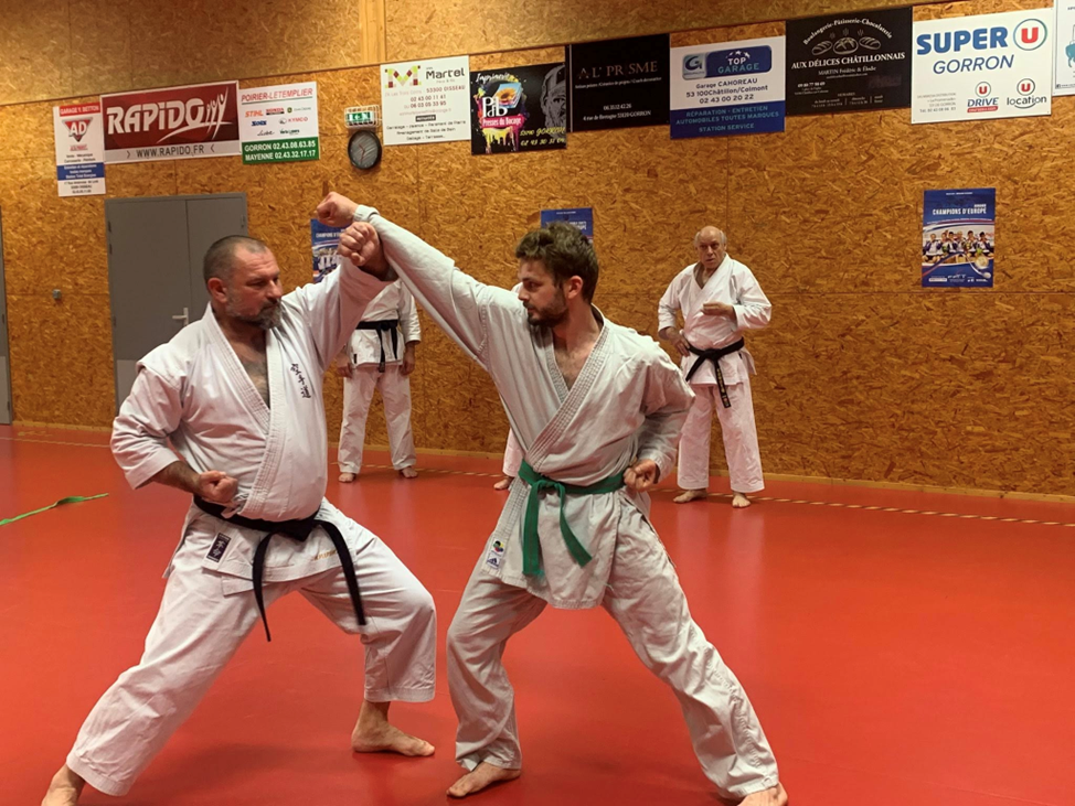 Mardi 2 décembre, une petite délégation du LK53 a fait le déplacement jusqu’au K3C (Karaté Club de Châtillon-sur-Colmont) où nous avons été accueillis par Sandrine Fluteaux, Nicolas Fluteaux et Anthony Quéguineur pour un moment d’échange et de pratique avec les membres du club. Nous avons eu le plaisir de participer au cours animé par Nicolas Fluteaux, Sensei passionné et pédagogue, 5e dan – Lequel Nicolas, faut-il le rappeler, a débuté tout jeune au LK53 et y a enseigné encore tout récemment.